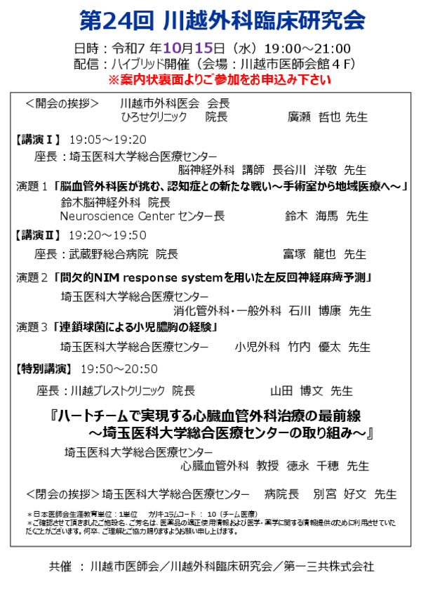 川越市、川越市医師会、川越市薬剤師会の後援を頂き、誰でもご聴講頂ける形になりました。