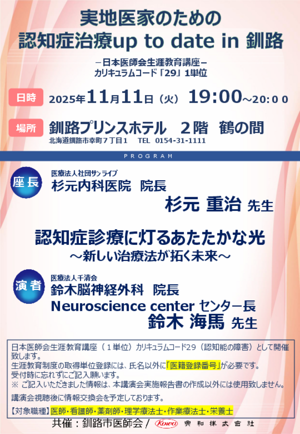 鈴木海馬院長が、抗アミロイドβ抗体薬「ケサンラ」に関する講演を行います!