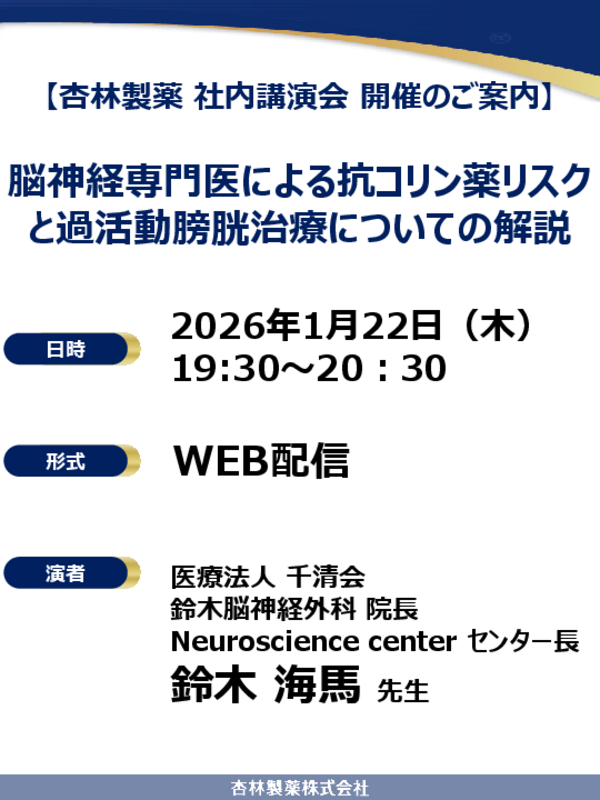 鈴木海馬院長が、杏林製薬の社内講演会にて、招待演者を務めます!