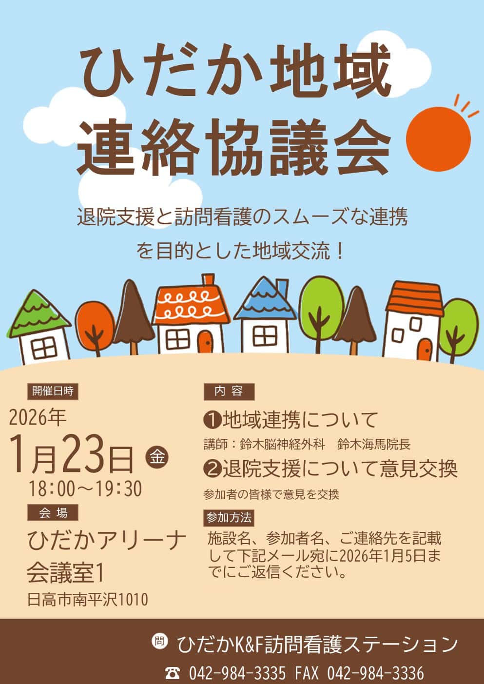 鈴木海馬院長がひだかK&F訪問看護ステーションと連携し、地域における退院支援と訪問看護の連携をテーマに討論を行います!