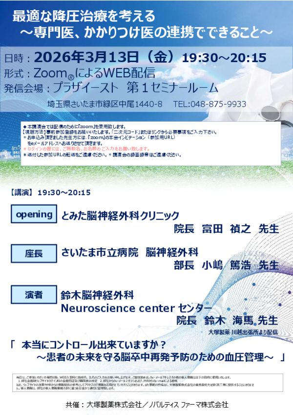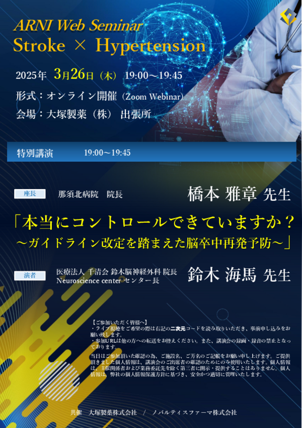 鈴木海馬院長が、脳卒中再発予防における血圧管理をテーマにWEBセミナーで講演を行います!