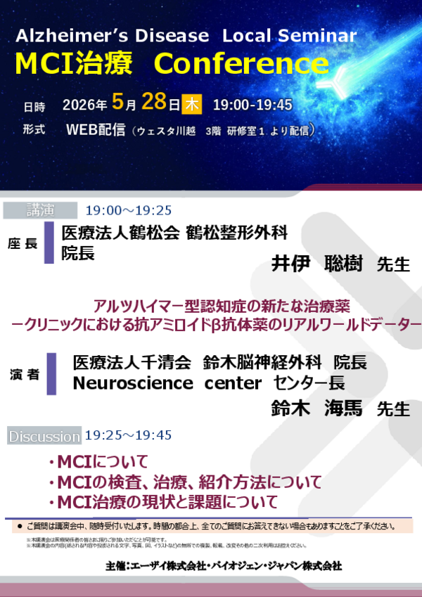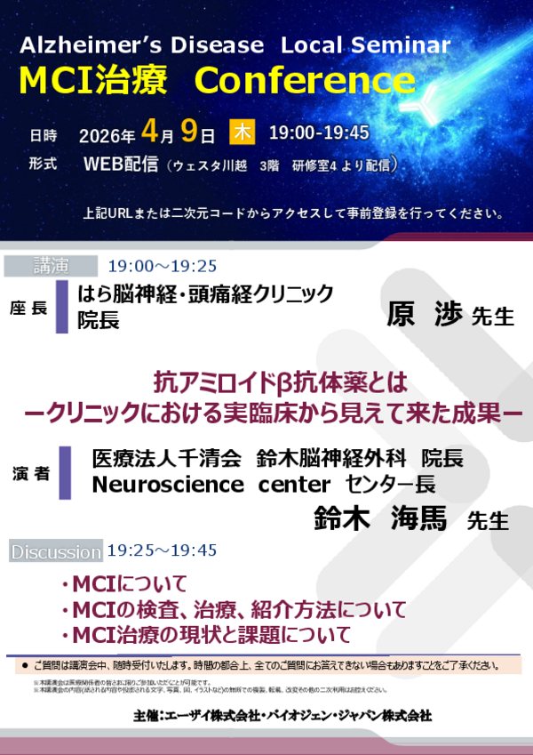 鈴木海馬院長が、MCI治療の最前線と抗アミロイドβ抗体薬のリアルワールドデータをもとに、クリニックにおける実践的アプローチを解説します!