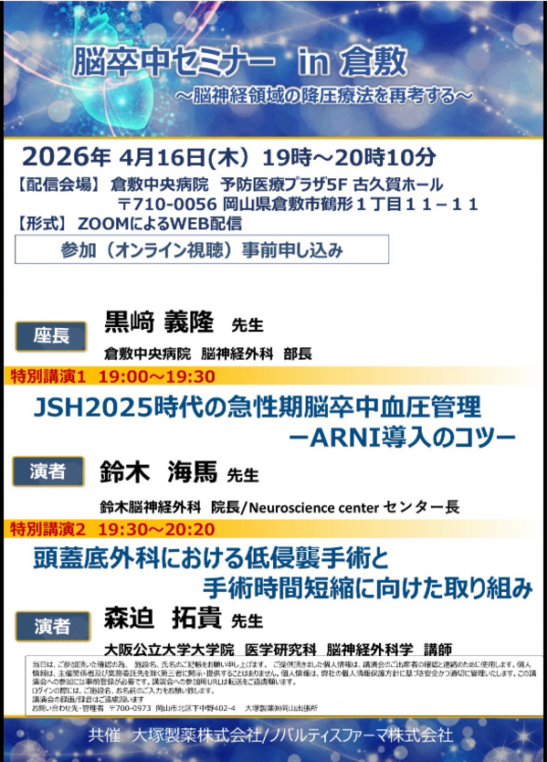 鈴木海馬院長が、倉敷にて開催される脳卒中セミナーに登壇します!